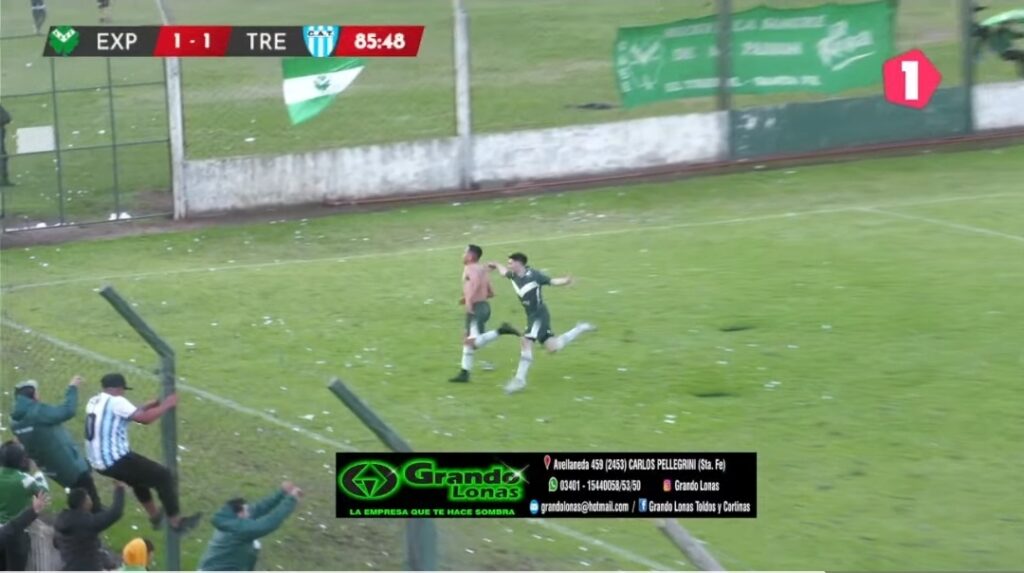 Ya en el complemento fue expulsado por doble amarilla Meza en Trebolense y el Verde lo fue a buscar y logró la igualdad con un golazo de Stabile a los 32 minutos.